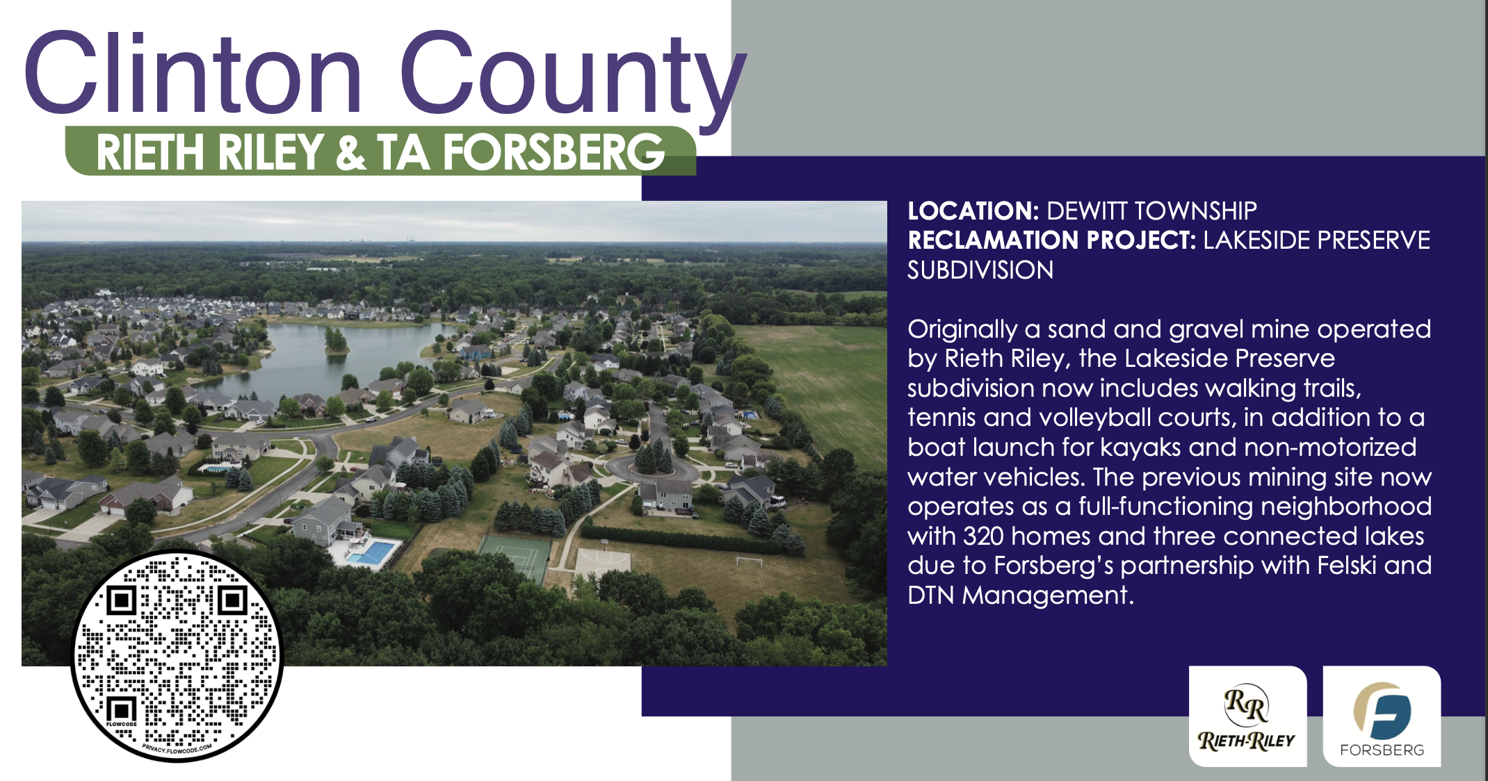 Michigan’s aggregate industry is Mining for the Future! We source sand, gravel and limestone to fix our roads and build our schools, churches, hospitals, offices, and more. We are also sparking the redevelopment of mining sites into environmentally friendly uses, including lakes, farm land, solar farms, golf courses, wildlife preserves, and housing.